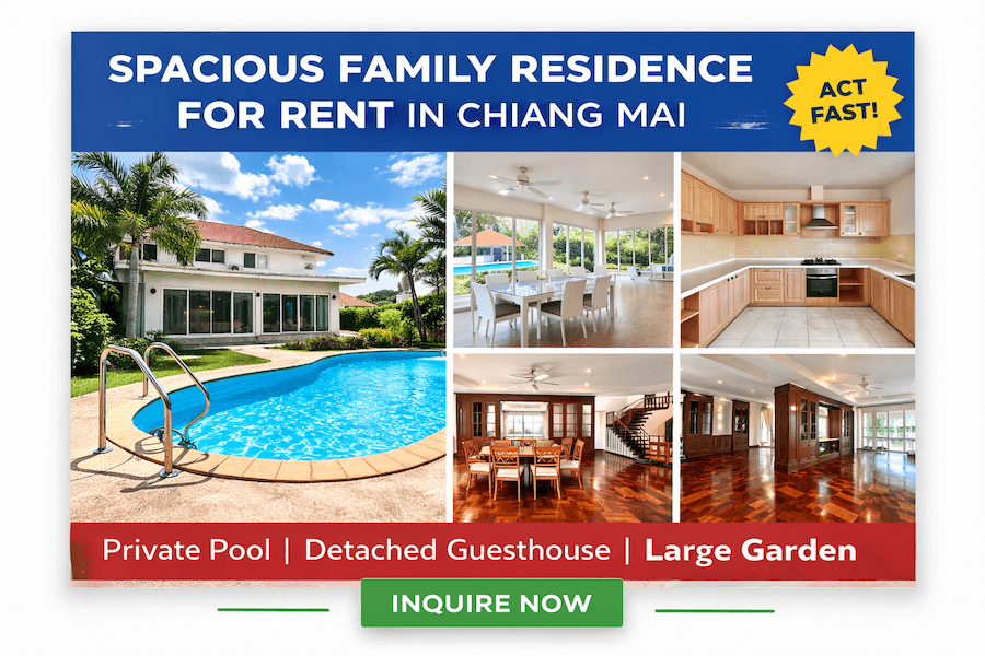 Long story short, Expat Homes helped us tremendously in finding our place here in Chiang Mai, and we definitely recommend them to others looking for a place here!